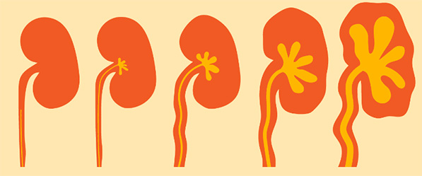 4. Derecede böbrek reflüsü: Kaçak böbreğe kadar ilerlemiştir ve böbrek pelvisi, kalikslerde genişleme ve küntleşmeler mevcuttur (böbreğin idrarı toplayan havuz ve havuzcuklarında bozulmalar).